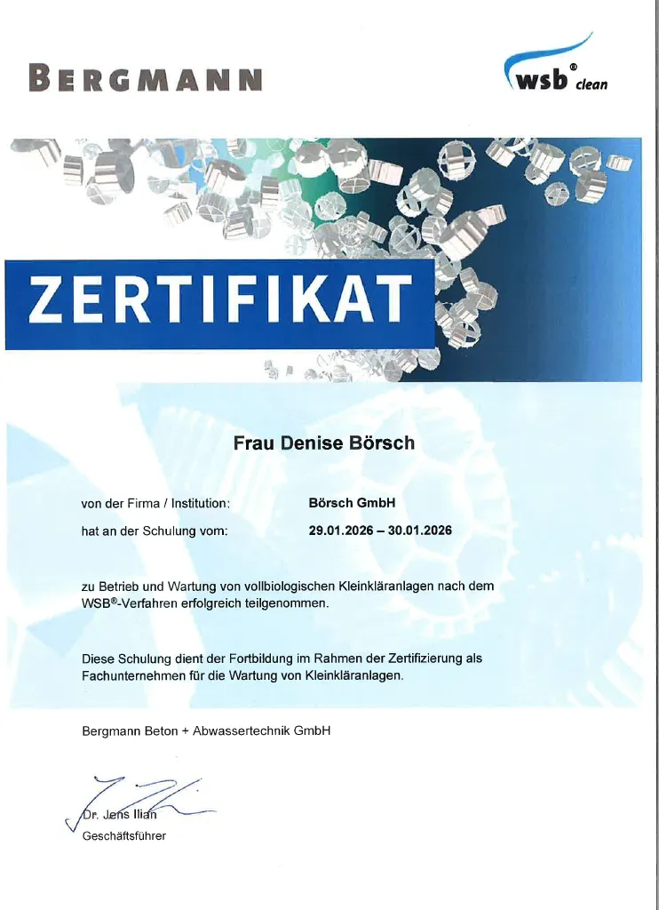 Denise Börsch Fachkundenachweis Wartung von Kleinkläranlagen